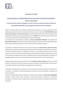 - IGD SIIQ ottiene l’attestazione ISO 30415:2021 per le politiche di Diversity, Equity & Inclusion